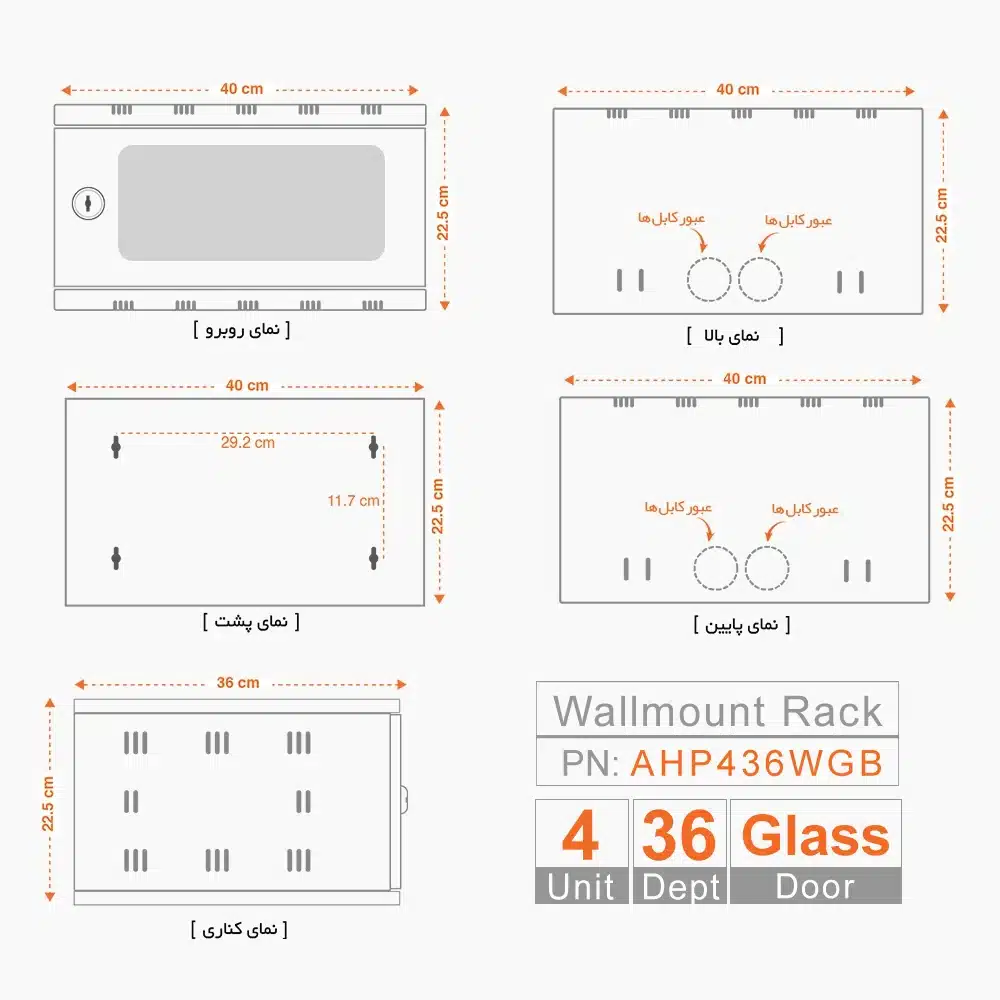 رک 4 یونیت عمق 36 | درب شیشهای | مشکی